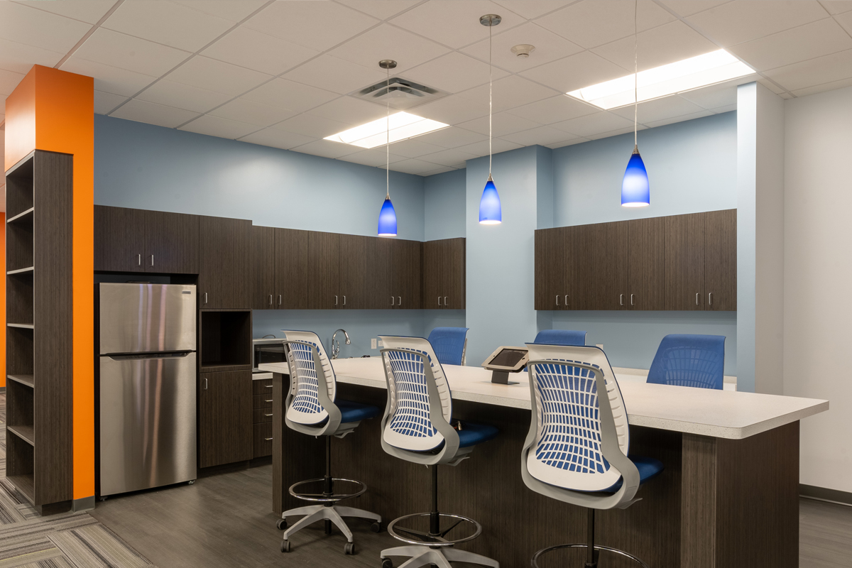 This is a new location located on the ground floor of the Prestonwood Tower. We fully demolished the 6500 Sq ft suite, including ceiling tiles and grid, and renovated the space with new office partitions, glass fronts, sliding glass doors, flooring, paint, and energy-efficient LED lighting throughout. K Force is a professional Technology, Finance, and Accounting solutions firm specializing in building Elite Teams.