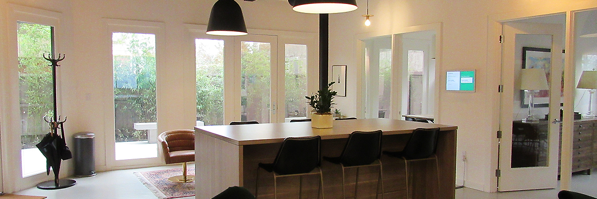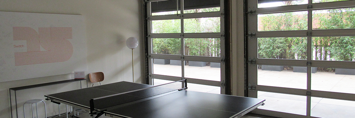 Office renovation at SWITCH. The project featured new glass-front office partitions, updated flooring, fresh paint, modern lighting, and operable overhead glass-pane garage doors. Key areas include a redesigned breakroom, finished office spaces, conference room, and lobby, transforming the space into a functional and contemporary workspace.