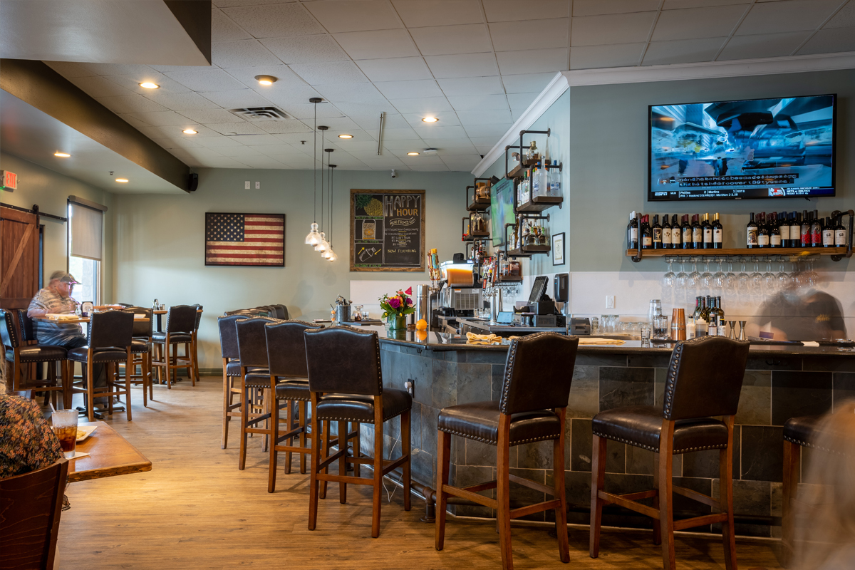 Revitalized with a modern touch, this space now features a larger bar with sleek granite tops, complemented by fresh updates throughout, creating a polished and inviting dining experience.