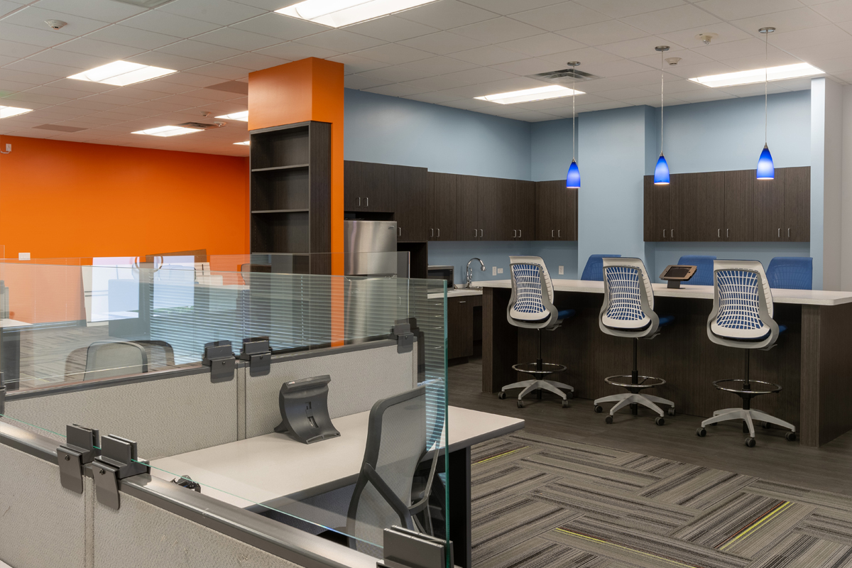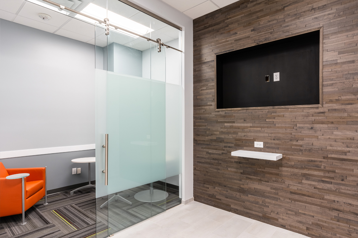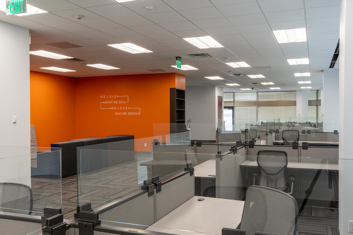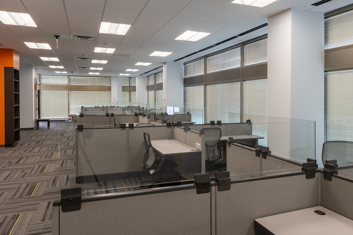This is a new location located on the ground floor of the Prestonwood Tower. We fully demolished the 6500 Sq ft suite, including ceiling tiles and grid, and renovated the space with new office partitions, glass fronts, sliding glass doors, flooring, paint, and energy-efficient LED lighting throughout. K Force is a professional Technology, Finance, and Accounting solutions firm specializing in building Elite Teams.