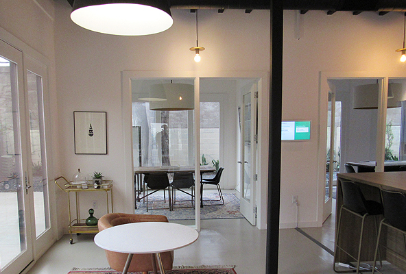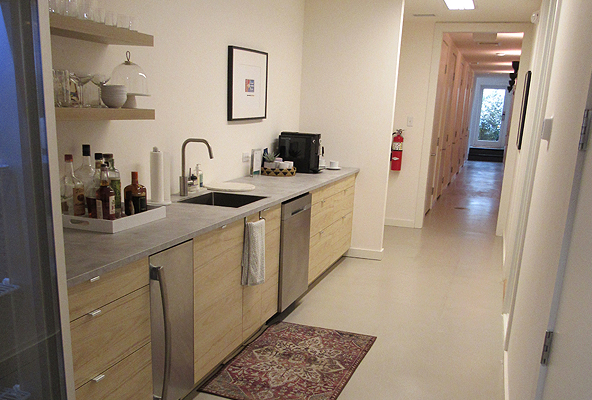 Office renovation at SWITCH. The project featured new glass-front office partitions, updated flooring, fresh paint, modern lighting, and operable overhead glass-pane garage doors. Key areas include a redesigned breakroom, finished office spaces, conference room, and lobby, transforming the space into a functional and contemporary workspace.