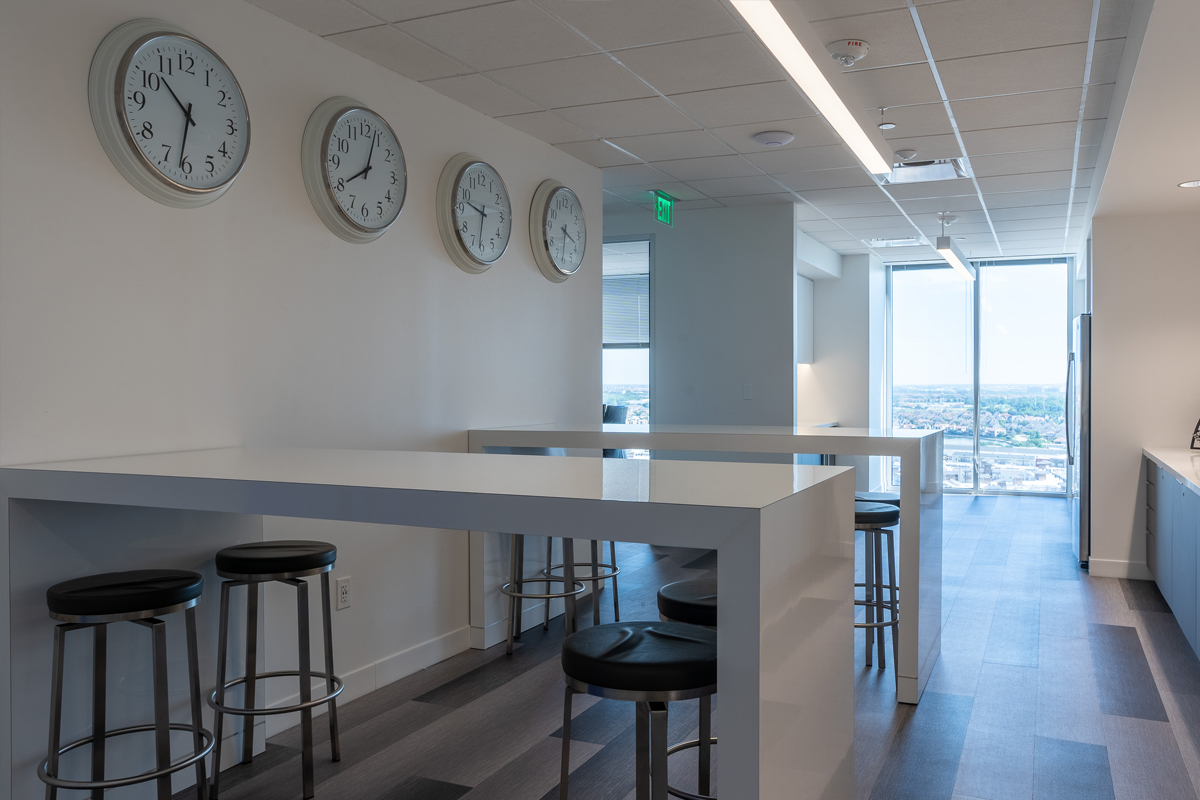 This newly designed and built office in Tower 909 at Lake Carolyn in Las Colinas in the new home to THRU occupying a quarter of a floor. The renovation involved extensive demolition of glass partitions and the installation of new office partitions, glass fronts, updated flooring, fresh paint, and all-new energy efficient Led lighting throughout.